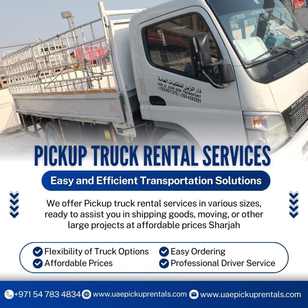 Reliable and affordable pickup truck rental services for deliveries, moving, and transportation across the UAE. We offer well-maintained pickup trucks with professional drivers, ensuring safe and timely deliveries. Available for personal and commercial use. Contact us for bookings!(Pickup for rent in Sharjah)